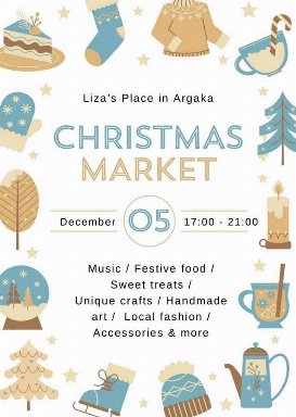 5 декабря на территории уютного ресторана Liza’s Place в деревне Аргака состоится рождественский маркет, который объединит атмосферу зимних праздников, уникальные изделия местных мастеров и вкусные сезонные угощения.