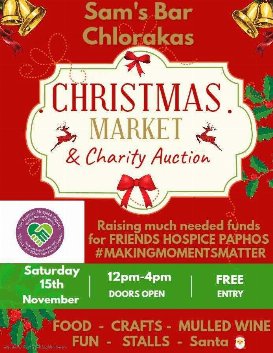 Рождественский маркет и благотворительный аукцион пройдут в баре Sam’s Bar в Хлораке (район Пафоса).
