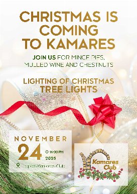 В 16:00 начнут выступления хоров, после чего гостей будут угощать пирожками mince pies, глинтвейном и жареными каштанами. Посетители смогут насладиться уютной атмосферой и моментом, когда зажигаются огни на рождественской ёлке у клуба Kamares.