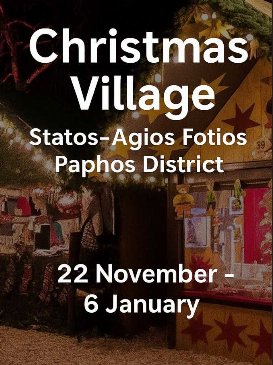 Мероприятие открыто для всех жителей и гостей региона и станет тёплым началом сезона зимних праздников в одном из самых живописных уголков Пафоса.