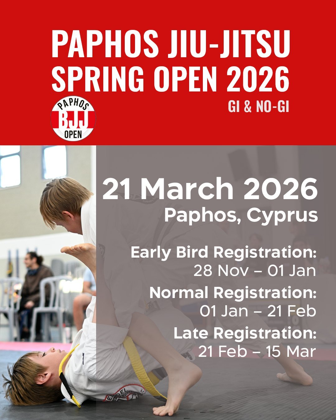 Турнир по бразильскому джиу-джитсу пройдёт 21 марта 2026 года в Пафосе. Формат соревнований включает две дисциплины: в кимоно (Gi) и без кимоно (No-Gi).