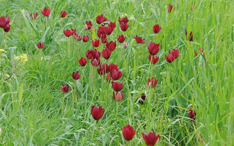 Посетители могут отправиться к тюльпановому полю в окрестностях деревни, чтобы увидеть яркое сочетание красных цветов и зеленой растительности. Срывать тюльпаны строго запрещено, так как это охраняемый вид, численность которого сокращается.