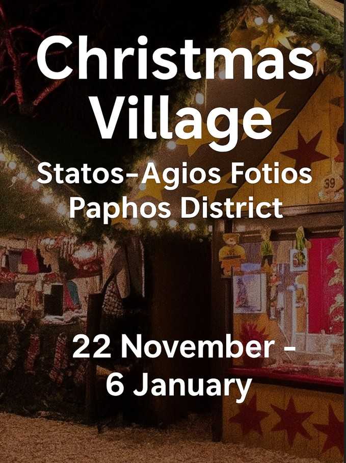 Департамент туризма Кипра объявил восьми рождественских деревень, которые будут работать с 22 ноября 2025 года по 6 января 2026 года в разных районах острова. Среди них – Statos-Agios Fotios, единственная рождественская деревня, расположенная в районе Пафоса.