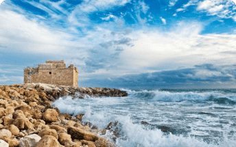 Эпоха возрождения Пафоса пришлась на время господства Византийской империи. В 965 году Кипр был захвачен и присоединен к Византии, а позднее, в 1191 году к английской империи – в город вошли крестоносцы под командованием короля Ричарда «Львиное Сердце». Через год правителем Кипра стал вассал Ричарда «Львиное Сердце» Ги де Лузиньян, основатель династии Лузиньянов. Оборонительные сооружения города были существенно модернизированы и укреплены. Основным фортификационным сооружением города стала византийская крепость Саранта Колонес, что в переводе означало крепость «сорока колонн». В эпоху Лузиньянов крепость была укреплена и перестроена, однако и это не спасло ее от разрушительного землетрясения 1222 года. Так как повреждения были очень серьезными, восстановлению крепость уже не подлежала, вместо нее был построен новый военных форт меньшего размера, сохранившийся до наших дней.