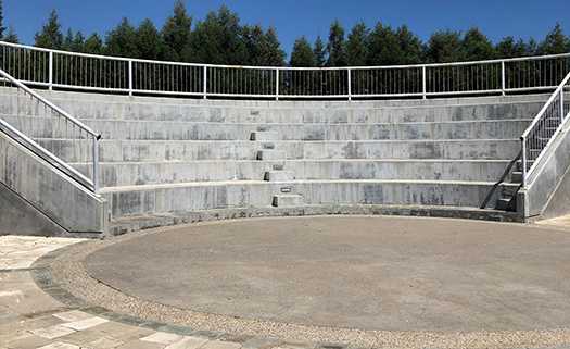 The amphitheatre in Acheleia is an antique structure designed to host mass outdoor spectacles.